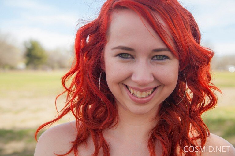 Description: Here we have a sweet and pretty redhead called Alisyn Carliene. See her smiling into the lens of the camera and exposing her wonderful big tits. Check out Cosmid for more!
