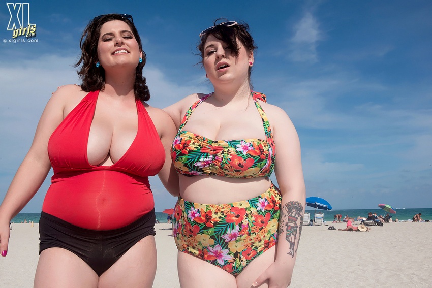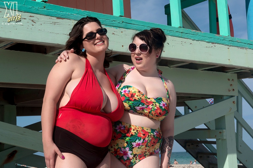 Description: Here you can see curvy beauties Alana Lace and Kelli Maxx from Scoreland having a nice day at the beach and showing off their naked tits.